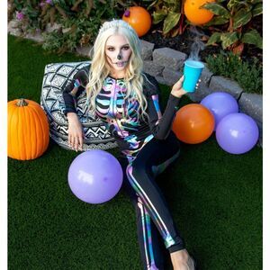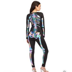 Tipsy Elves Women's Iridescent Skeleton Bodysuit Costume Jumpsuit Size S