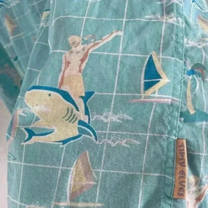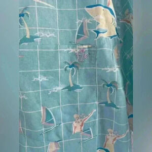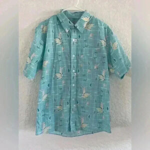 Tipsy Elves button down collared shirt men’s medium palm tree, surfer riding shark
