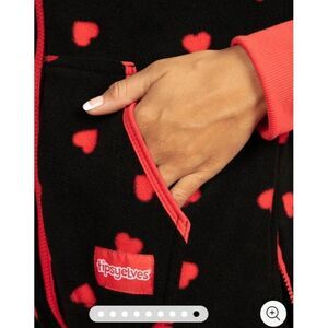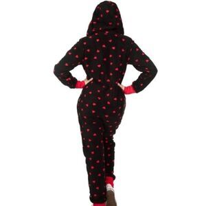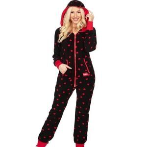 Tipsy Elves Ladies XL Hearts on Fire Hooded Zip Fleece Pajama Jumpsuit New