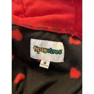 Tipsy Elves Ladies XL Red Heart Print Hooded Zip Fleece Pajama Jumpsuit New