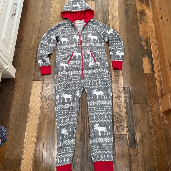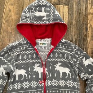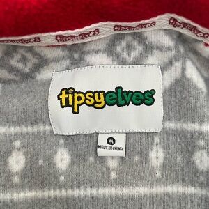 Tipsyelves fleece onesie in men’s size medium. Oversized. Full zip front. Kangaroo pocket zippered pockets on hips. Zips all the way up. Very warm. Excellent condition.