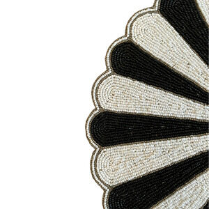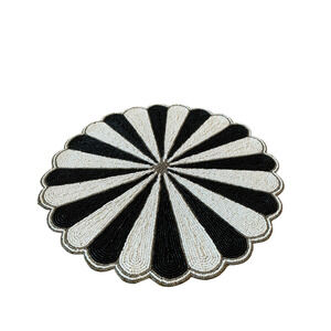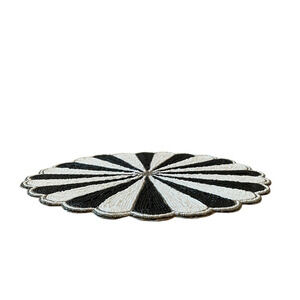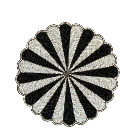 TIRAMISU Beaded Placemat Charger 15in Round Black & White Candy Stripe