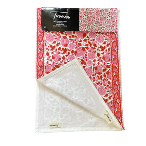 Tiramisu Pink & Red Floral Premium Cotton Placemats 13x19 Set of 4 New