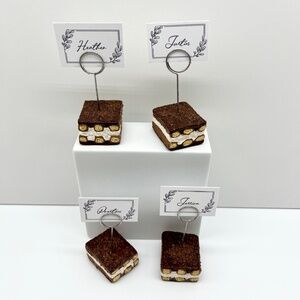 Perfect for holiday dinners, weddings, Italian-themed parties, dessert tables, birthdays, or hostess gifts, these little tiramisus make any place setting feel warm, fun, and thoughtful. Each holder includes a metal ring stand, ready for your place cards, photos, or small signage.