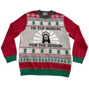 Tis The Reason For The Season Ugly Christmas Sweater Party Jesus Adult 2XL EUC