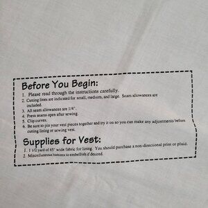 • Fabric panel includes vest pattern pieces and instructions