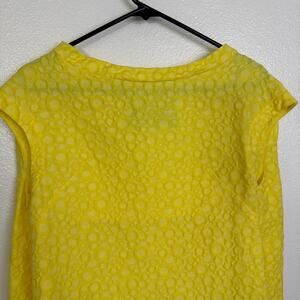 Tish Cox Designer Top Womens XS Yellow Shirt Jacquard Cap Polka Dot Made in USA