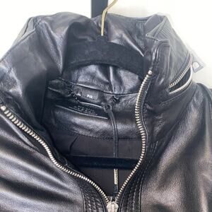 Introducing the Tisha Leather Jacket by RUDSAK, a must-have outerwear piece for the modern woman. Made by renowned brand RUDSAK, this stunning leather jacket exudes style, sophistication and impeccable craftsmanship. Designed to make a statement, the Tisha Leather Jacket is perfect for those looking to add a bold edge to their wardrobe. Its sleek black colour and high zip collar create a bold and confident look, while the quilted panels add a touch of texture and elegance. This jacket features two front zip pockets, allowing you to keep your essentials close at hand whilst maintaining a stylish appearance. The zipped cuffs and snap straps provide a customisable fit and add extra style to the design. Completing the look is a ribbed hem that offers a flattering and comfortable fit. Made from 100% leather, this jacket epitomises luxury and durability. The high-quality material ensures long-lasting wear, making it a timeless addition to your outerwear collection.