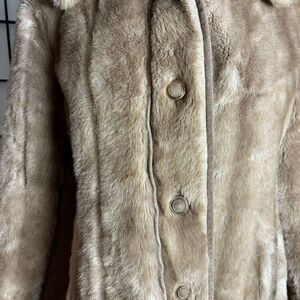 Stunning vintage faux fur coat button up collared front pockets fully lined
