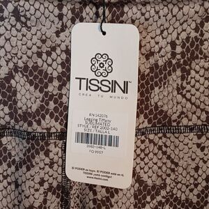 These New with tags brown and gray snakeskin print Tissini leggings are a size Large Tall with a waist measuring 14" laying flat an inseam of 29" and a front rise of 11".