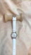 This is a Tissot women’s watch featuring a sleek and elegant design. The watch has a silver-tone stainless steel case with a polished finish, paired with a white leather strap that provides a soft, comfortable fit. The dial is a clean, minimalist white with subtle silver-tone hour markers and hands, along with a small date window positioned at 3 o’clock. The watch face includes the “Tissot 1853” logo, showcasing the brand’s heritage. This timepiece combines sophistication with simplicity, making it a versatile accessory for both casual and formal occasions.