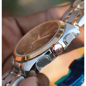 This watch has a stainless steel case in great condition with almost no flaws. The face features Rose Gold accents on a Black Face giving an awesome vintage look overall. It also has a date function! This watch is brand new however does not come with original box and papers.