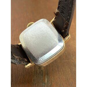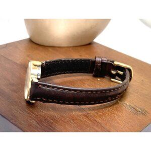 Tissot Womens Watch Vintage Swiss Mechanical Gold Silver Dial Brown Leather Band