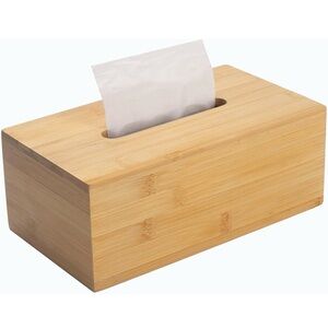 Tissue Box Cover, Rectangular Tissue Box Holder, Bamboo Facial Paper Holder for Bathroom, Bedroom, Dinner Table, Office (1 Pack, 9.8 x 5.5 x 3.7 inch)