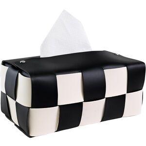 Cute checkered tissue holder. Pleather material. New in packaging.