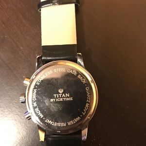 Large face Titan By Icetime Watch. Black leather band. Excellent condition!