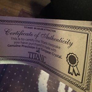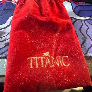 This is a titanic Memorabilia Necklace. It has a blue hear shaped genuine cut European crystal surrounded by white rhinestones. its on a short silver colored beaded chain necklace. It has a Titanic tag on the necklace. It comes with a red velvet jewerly pouch, certificate of Authencity from the Titanic Muesum and an extra crystal in a clear case. This is new with Tags. Its valued at $25.99. It has a lobster claw clasp. This is sold locally at my store, The Vixen Boutique LLC. All sales are final and price is firm.