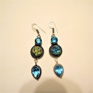 Titanium Druzy Blue Topaz & .925 Silver Earrings