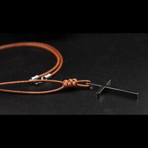 Titanium Steel Cross † on Hand Knotted Brown Leather Necklace