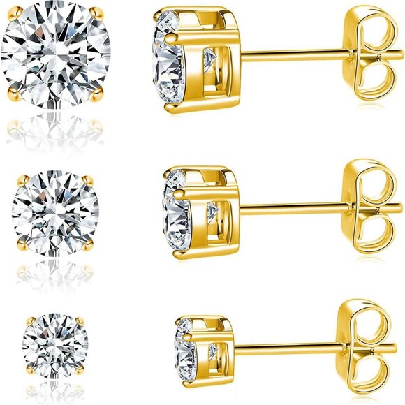 Product details Material Stainless Steel Metal type Stainless Steel Back Finding Push Back Earring design Stud Gem type Cubic Zirconia About this item Cubic Zirconia Studs Earrings Set: 3 Pairs In One Packages. Size 3mm,5mm,7mm. The butterfly buckle add extra protection for you. Titanium Earrings for Women and Men: Hand-crafted in titanium Earrings featuring Sparkling AAA+ cubic zirconia. Nickel Free Earrings: Hypoallergenic earrings for women, and men, lead and nickle free earrings studs, non allergenic earrings for sensitive ears. Secure butterfly earr