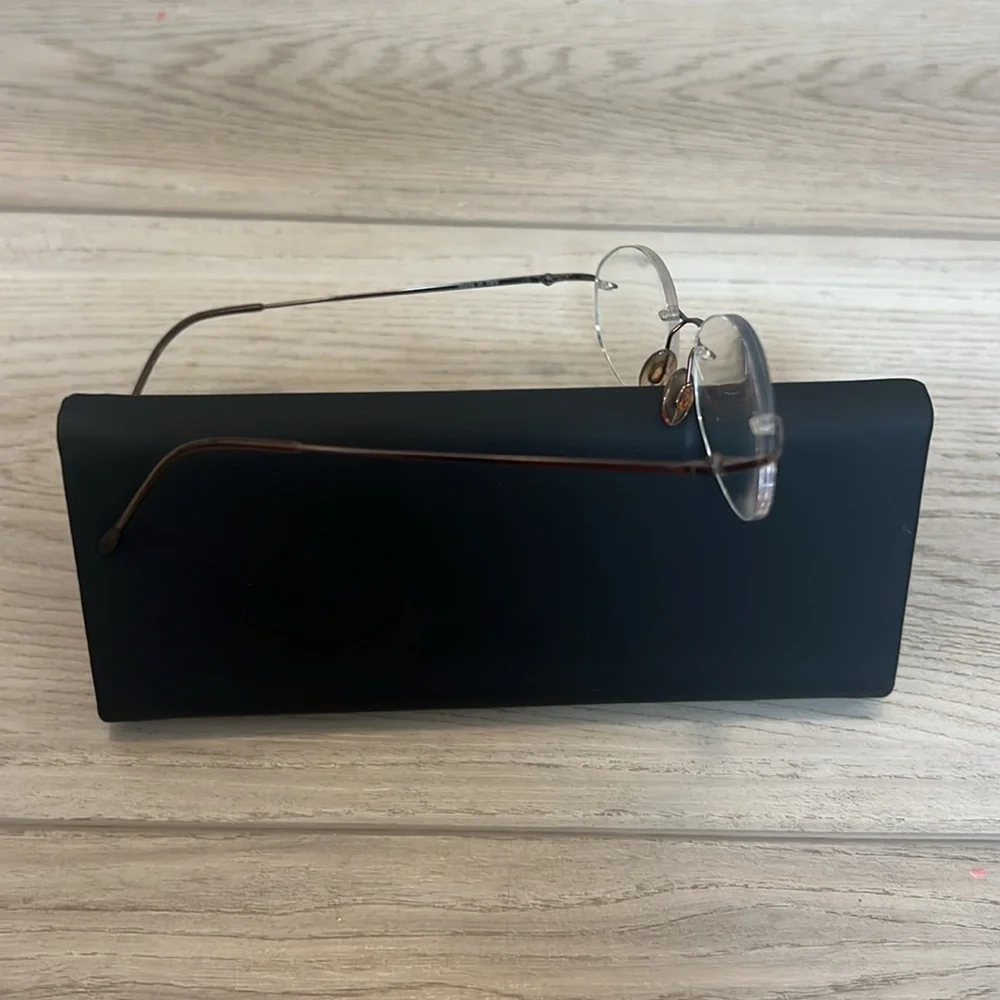 Titanium rimless eyeglasses “frames” with a black case. Perfect for a minimalist look.