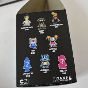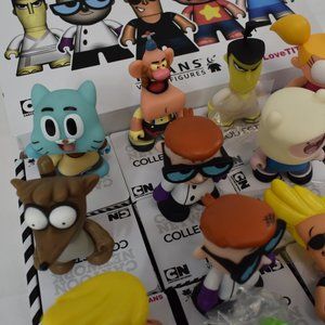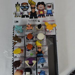 Full Set of Cartoon Network Figures, the 12 regular figures and all 4 chase figures, Note* All Have been opened for verification purposes only. They will come in the boxes and in the foil wrappers, also they will ship in an original display box that held 20 figures, this is for the full set of 16. The classic cartoons immortalized by Cartoon Network join the ranks of Titan vinyl figures! Featuring fan favorites from Dexter's Laboratory, Adventure Time, Johnny Bravo, and many more, this is the ultimate cartoon collection! Each mini-figure measures approximately 3-inches and comes blind-boxed. Samurai Jack Dexter Mordecai Uncle Grandpa Gumball Johnny Bravo Steven Universe Rigby Grim Eduardo Finn Deedee Chase Johnny Bravo Chase Mordecai Chase Dexter Chase Finn