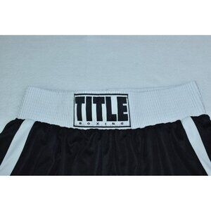 Title Boxing Mens Trunks Size L Black/White Elastic Waist Shorts 7" Inseam