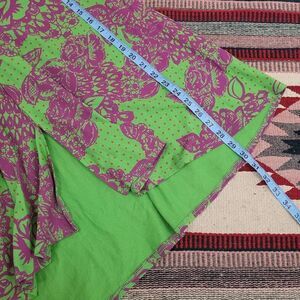 Title Nine A-line Skirt Sz L Floral Green Purple Ruched Waist Front Slit Stretch