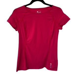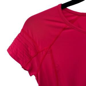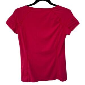Title Nine Athletic Tee Shirt Pink Nylon Stretch Short Sleeve Pocket Small