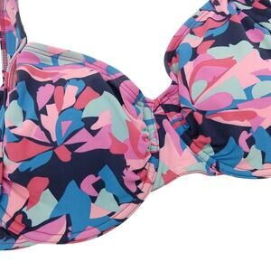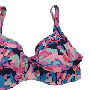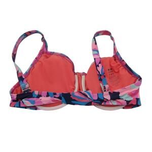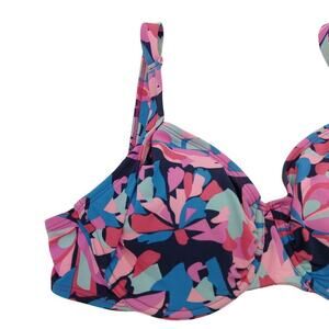Title Nine Bikini Top Size 36DD Pink Print Underwire Bra Pads Swimsuit Support