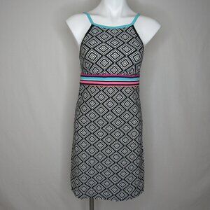 This fun black abstract print Title Nine dress can be worn as a swim dress / outdoor activewear or a a coverup. It is in women's size small.
