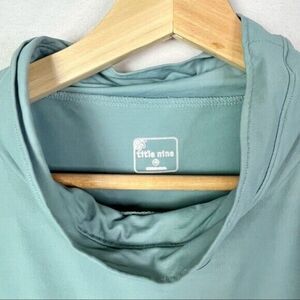Title Nine Blue & Green Mock Neck Cinched Side Long Sleeve Rash Guard M