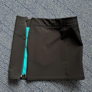 Full top to bottom zip, soft fleece on the inside, soft shell outside.