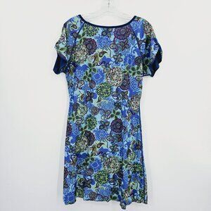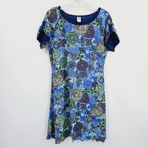 Title Nine Dress Athena Athletic M Blue Floral Paisley Short Tab Raglan Sleeve