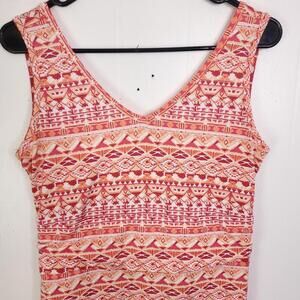 Title Nine Dress Womens Small Stretchy Summer Casual V Neck Printed Colorful