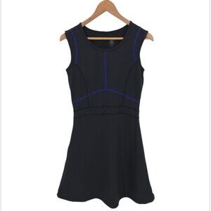 Title Nine Fit Flare Dress Womens Small Black Blue Zip Pocket Sleeveless Athleisure Athletic