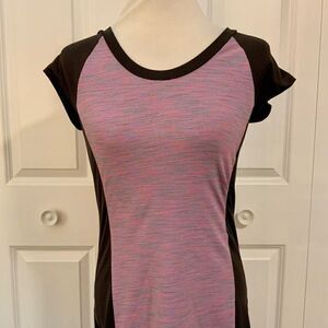 Title Nine Gidget 2.0 Athletic Dress Grey Purple Stripe Cap Sleeve Small