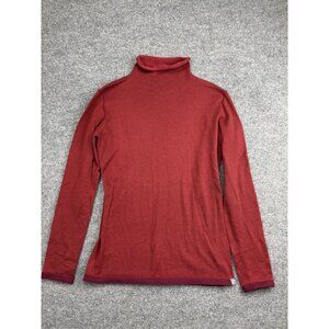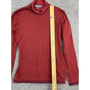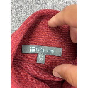 Title Nine Mock Neck Shirt Womens Medium Burgundy Stripe Long Sleeve Stretch