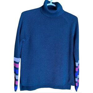 Title Nine NWT Navy Blue Turtleneck Sweater M Striped Colorblock Sleeve Pullover