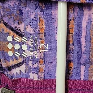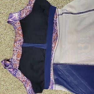 women's sz 12 Title Nine Nimblene athleisure racer back dress with built in bra. back zipper. zippered pocket on left hip. 86% polyester, 14% spandex. 36" chest. 36" shoulder to bottom. purple brown