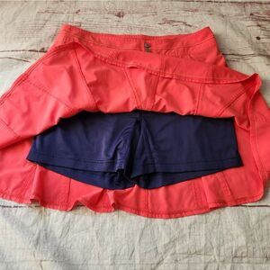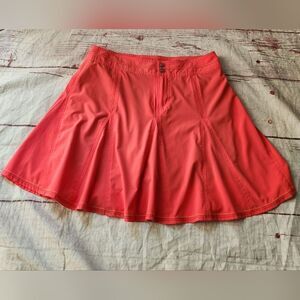 Coral color featherweight skort with attached mesh shorts. Water repellent with 2 zip closure back pockets. In very good condition.