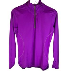 Title Nine Paradigm 1/4 Zip Long Sleeve Pullover Top Purple Med Graphic Writing
