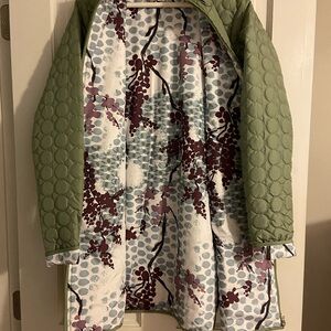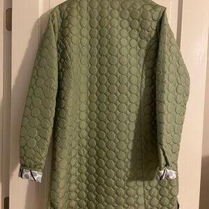 Chic jacket with a unique circular pattern. Lining features a blend of colors for a stylish look.