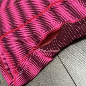 Title Nine Pink Stripe Zip Up Reflective Jacket Thumbholes Size Small. Excellent condition! 71% nylon/21% polyester/8% spandex. Two front zip pockets. Two inside slip pockets. See pictures for measurements
