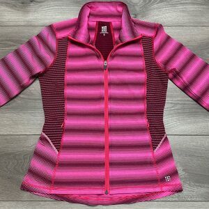 Title Nine Pink Stripe Zip Up Reflective Jacket Thumbholes Size Small