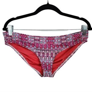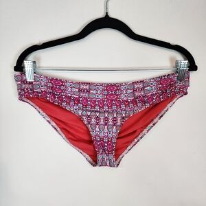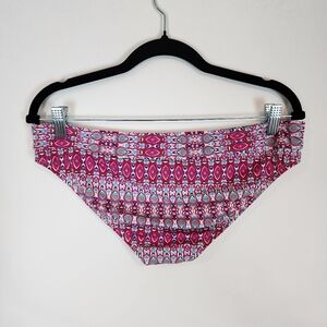Title Nine Pink Teal Low Rise Hipster Bikini Bottom Swimsuit Boho Cat Eye sz Lg