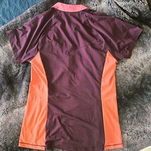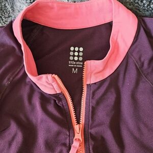 Excellent condition, only worn once, size Medium. Tri color, pink at the collar, hot coral sides, plum colored body. it has Two side pockets and a half zip front. Clean non smoking home