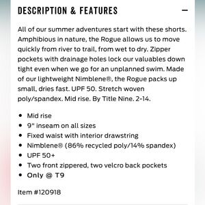 Title Nine Rogue Shorts 9" Nimblene Quick Dry Shorts Women's Size 12