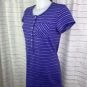 Title Nine Selkie Tunic Dress Size Small Sapphire Purple Striped Short Sleeve D3
