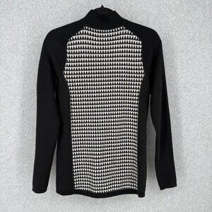 Title Nine Super Power Quarter Zip Sweater Size XS Houndstooth Geo Merino Wool